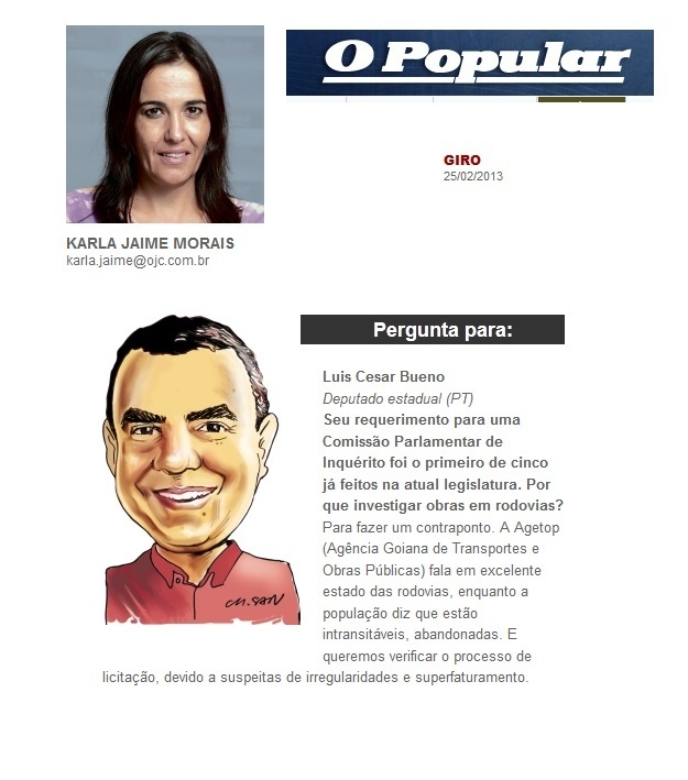 Nota publicada na coluna Giro do Jornal O Popular em 25 de fevereiro 2013