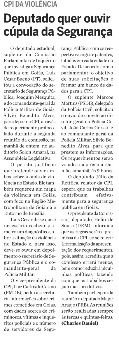 Luis Cesar Bueno espera continuidade dos trabalhos da CPI durante as férias