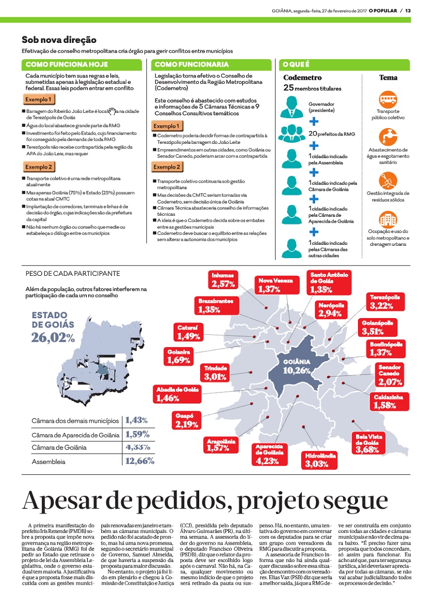 Para Luis Cesar, que há tempos tenta discutir e regulamentar questões relativas às Regiões Metropolitanas, a polêmica vem em boa hora, pois estimula o debate. Autor da Lei Complementar que institui o Plano Diretor para as Regiões Metropolitanas de Goiás o deputado sugere consórcios de integração e políticas compartilhadas entre os municípios membros para eliminar problemas da malha urbana.