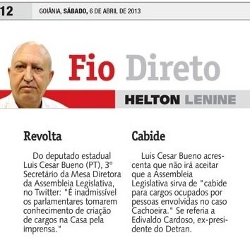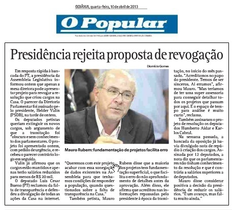 Nota de Repúdio da Oposição à criação de novos cargos na AssembleiaO jornal O Popular informa em sua edição de hoje, 4 de abril de 2013, a criação por parte da Assembleia Legislativa de uma resolução […]