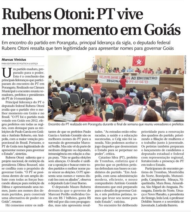 PT vive melhor momento em GoiásUm partido maduro, preparado para o poder. Esta é a conclusão das principais lideranças que participaram do encontro do PT em Porangatu. Realizado na Câmara […]