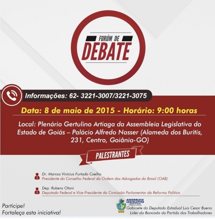 Luis Cesar Bueno promove discussão sobre reforma política e entrega titulo de…Nesta sexta-feira, 8, no Plenário Getulino Artiaga da Casa, o presidente do Conselho Federal da Ordem dos Advogados (OAB), Marcus Vinícius Furtado Coêlho, recebe Título […]