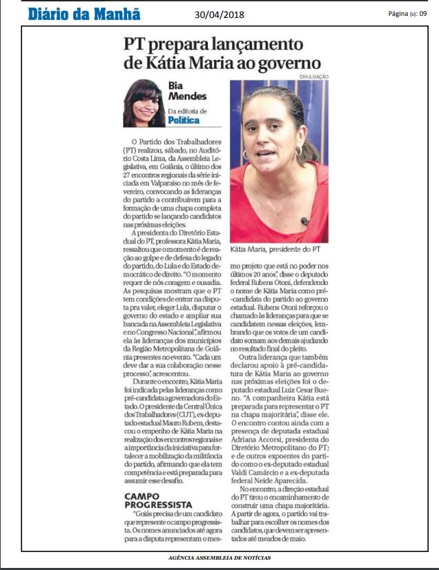 PT prepara lançamento de Kátia Maria ao governo